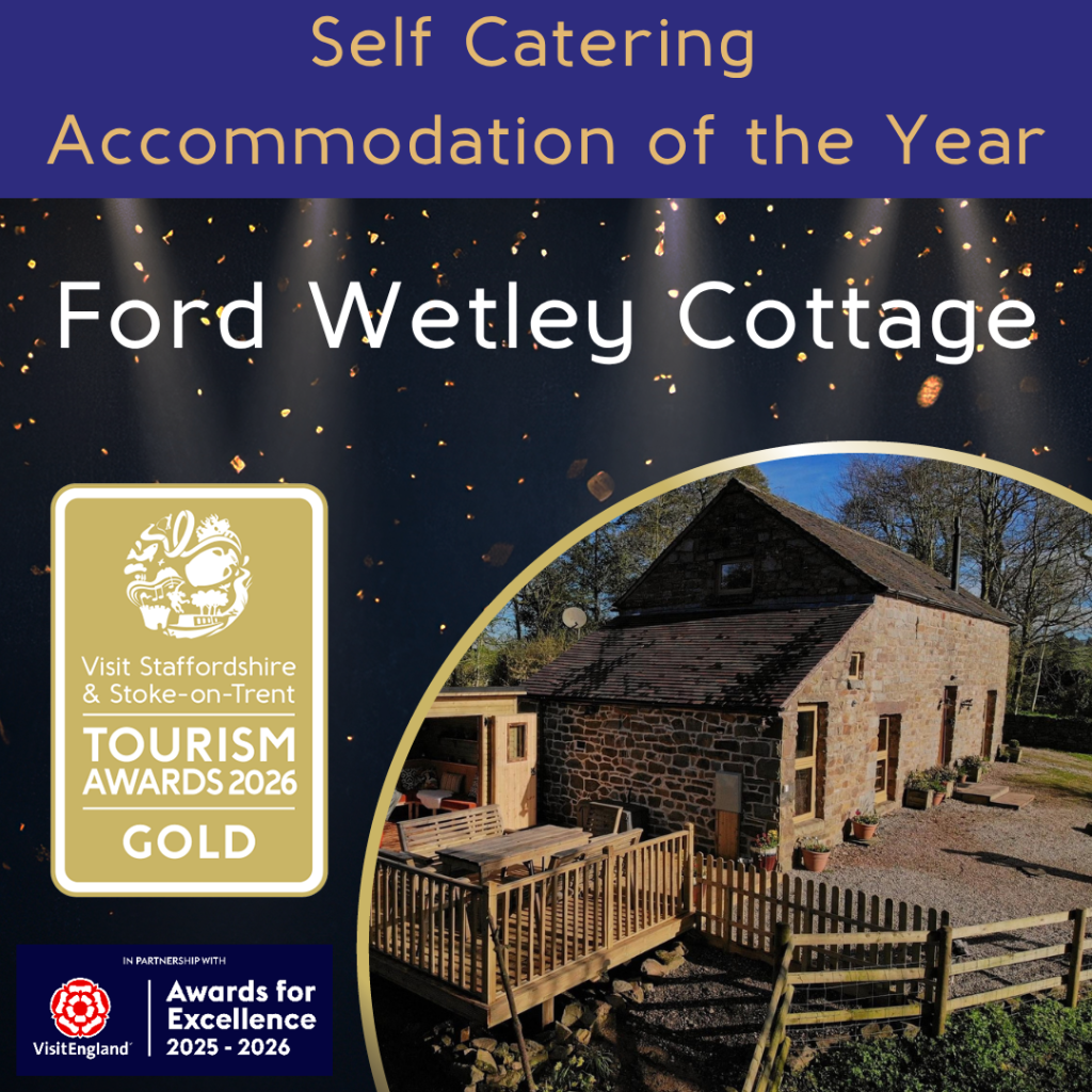 We don’t think we have actually got over the surprise of winning the Best Self Catering Accommodation category at this years tourism awards. You can read all about the evening here on Visit Staffordshire website.